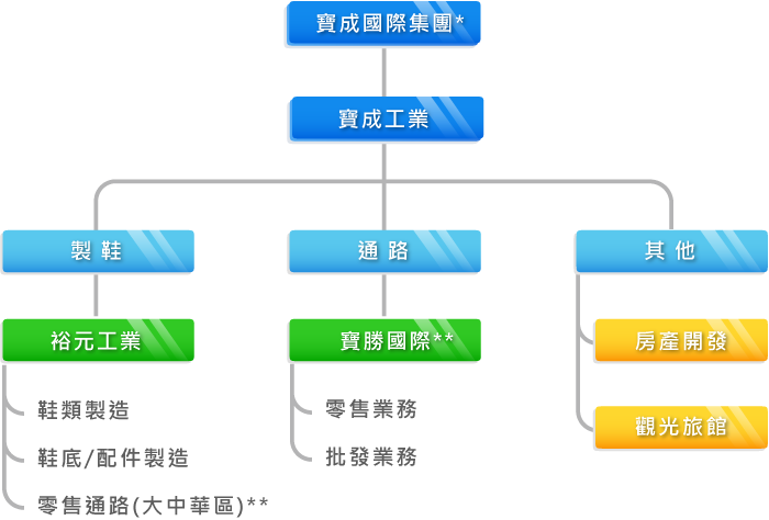 ** 寶成工業係透過轉投資之裕元工業間接投資寶勝國際從事零售通路業務。